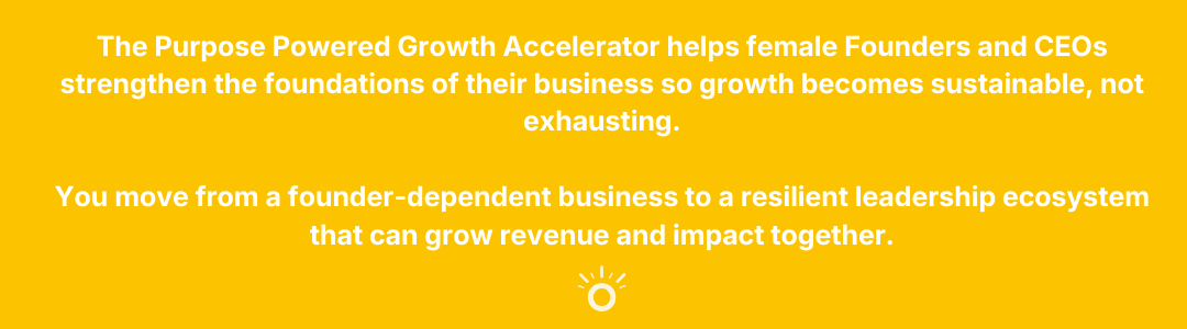 The Purpose Powered Growth Accelerator is for Female Founders or CEOs who: